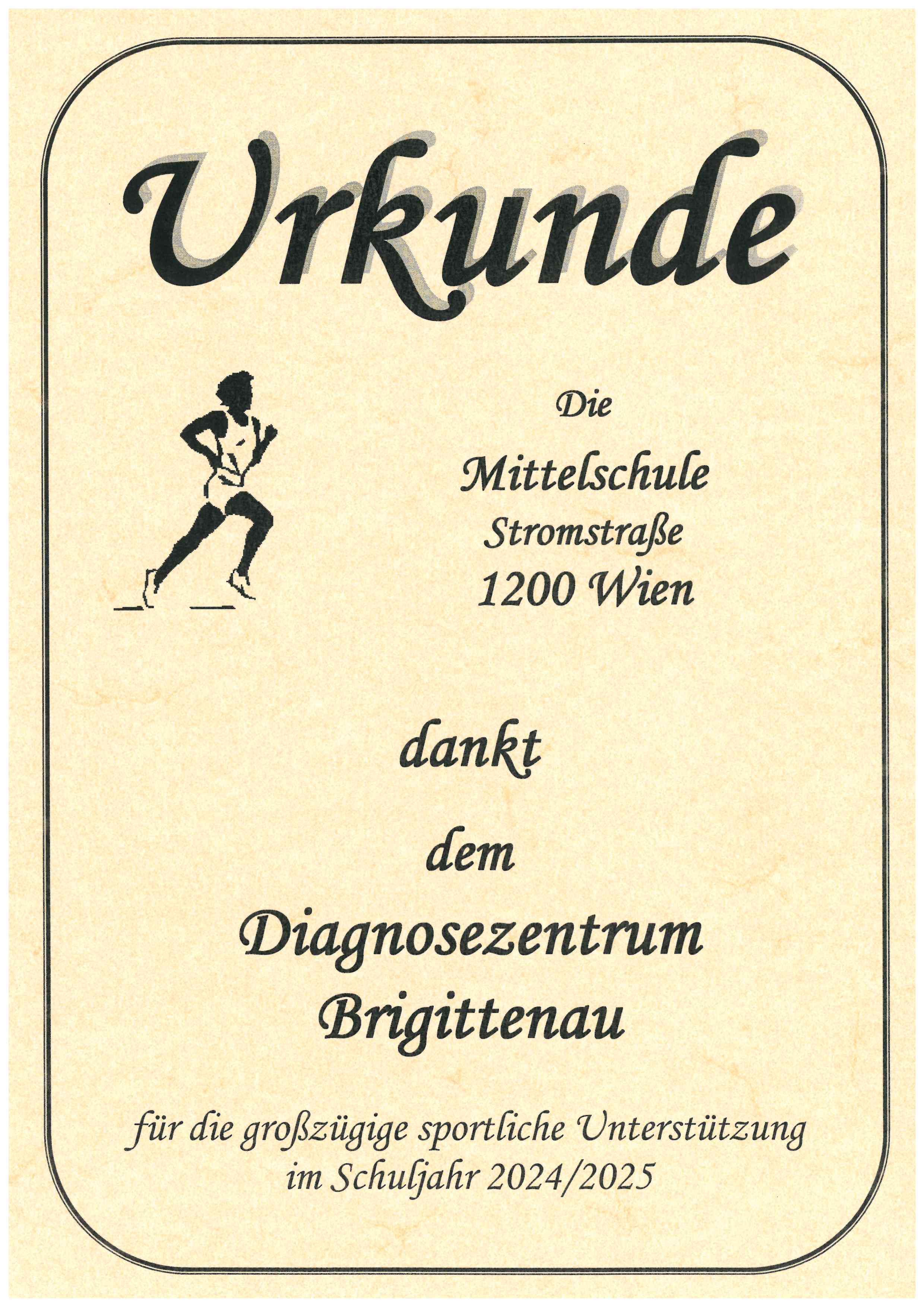 Herzlichen Dank an die Mittelschule Stromstraße 1200 Wien und für das gelebte Engagement für die österreichischen Schülersporthilfe.